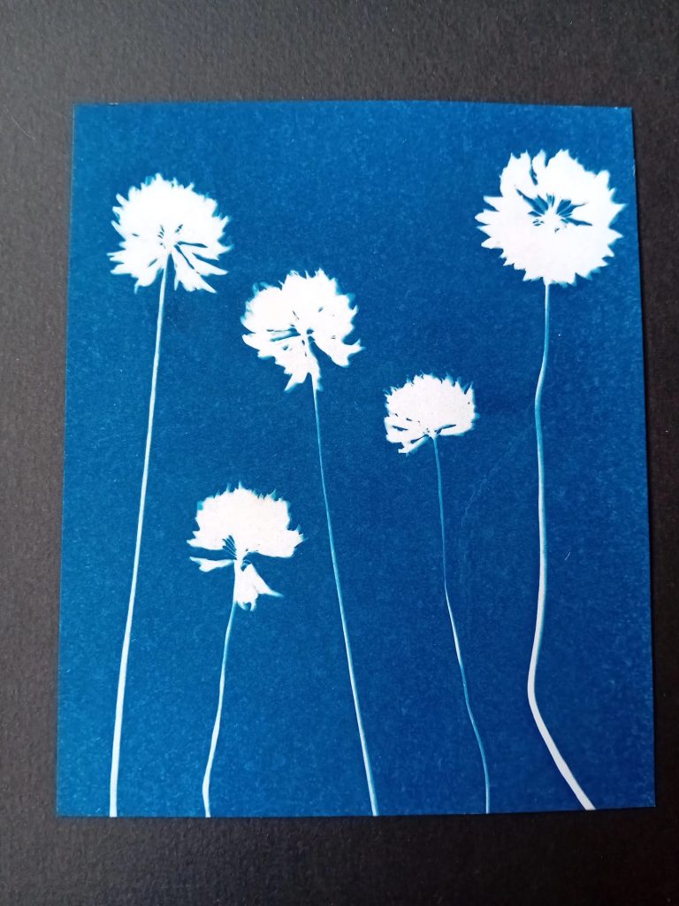 - Le cyanotype : J’adore cette technique qui utilise la lumière du soleil pour transformer le papier en une œuvre d’un bleu profond. C’est un peu de poésie solaire mise en boîte.